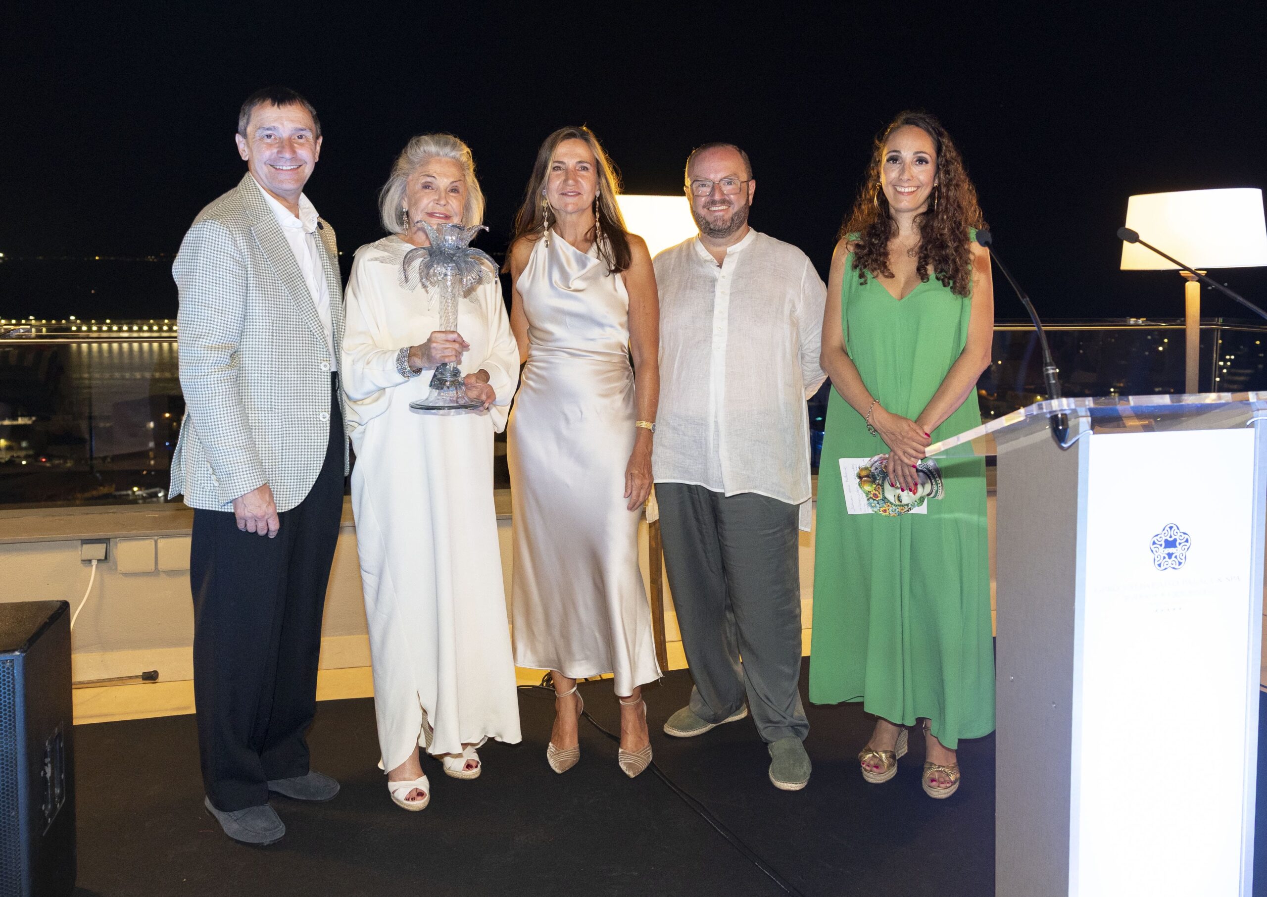 Beatrice recogió de manos de Toni Ferrer, presidente de la Asociación Mallorquines de Verano que, junto al relaciones públicas Tommy Ferragut, fueron los fundadores de estos premios que ya cuenta con 11 ediciones, una palmera realizada en exclusiva por la firma mallorquina de cristal soplado GORDIOLA, una pieza que simboliza el árbol de la bienvenida en tradición mallorquina, según las 3 civilizaciones que han convivido en la isla (árabe, judía y cristiana) durante siglos y que siempre se sembraba en la entrada de todas las casas de Mallorca.