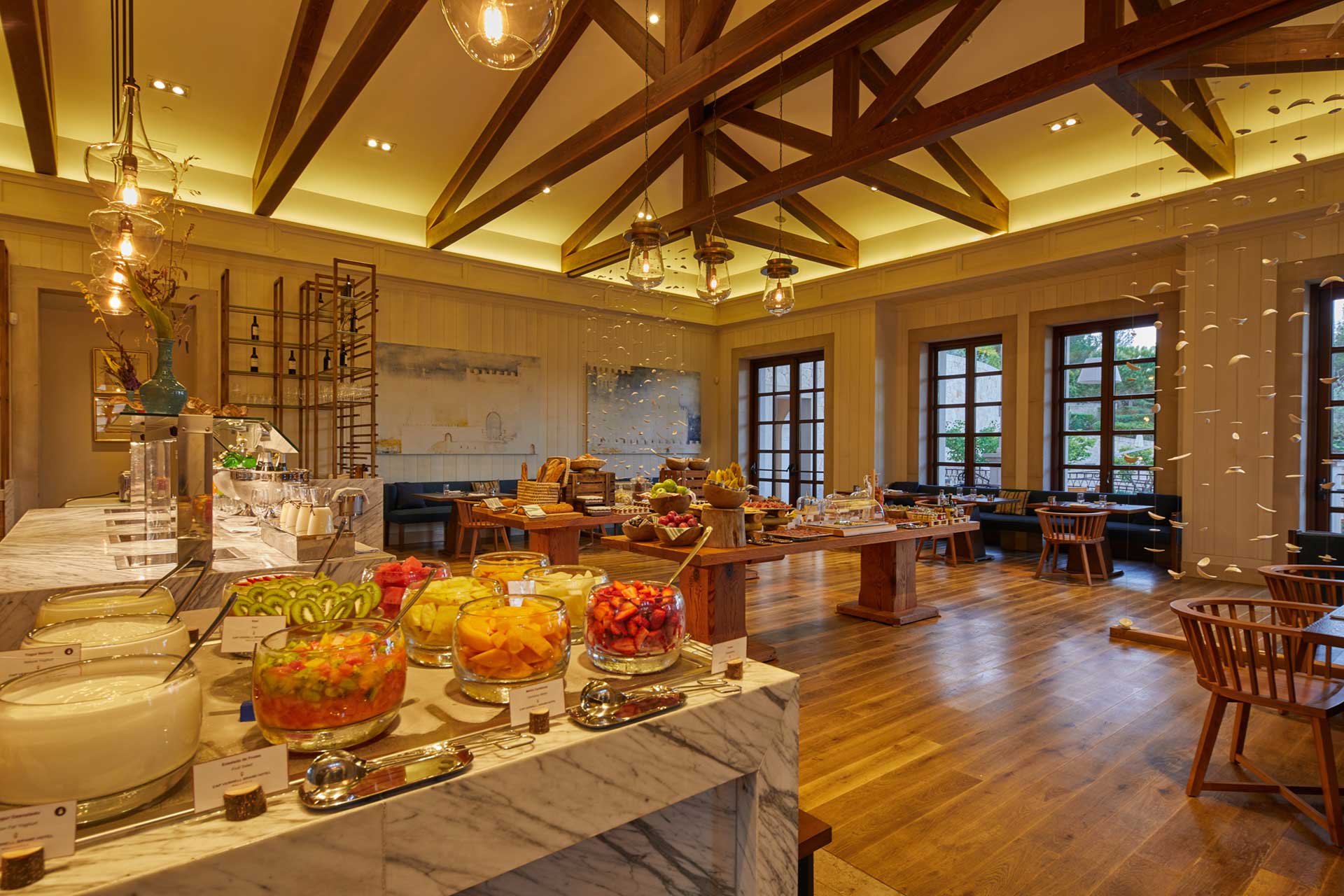 Ofrecen distintas opciones preparadas para diferentes culturas, con el fin de que sus huéspedes tengan la oportunidad de explorar y saborear la riqueza gastronómica de diferentes culturas. Con una extensa variedad de delicias artesanales elaboradas en el propio resort.