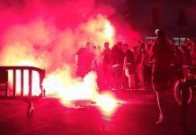Los aficionados mallorquinistas celebraron en Palma el ascenso a Segunda del Mallorca