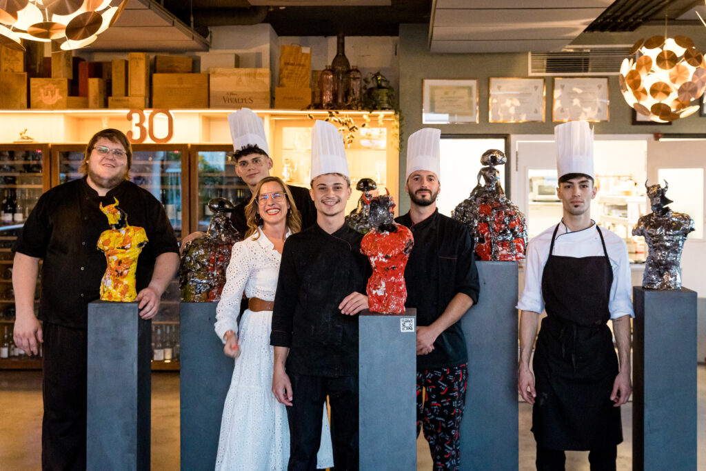 El chef Gerhard Schwaiger y Cristina Pérez junto a su equipo, volverán a sorprendernos una edición más con la elaboración de un menú para la ocasión. Recordemos que gracias a sus propuestas y creatividad, la guía roja Michelin, premió al chef durante 20 años con dos estrellas Michelin, convirtiendo al maestro Schwaiger en uno de los nombres mas respetados de la escena culinaria internacional. Tras el cóctel de bienvenida en el rooftop de Schwaiger disfrutamos de Victor Jiménez y su saxo, interpretando diferentes piezas en directo mientras contemplamos las nuevas creaciones de Ernesto Rodriguez.