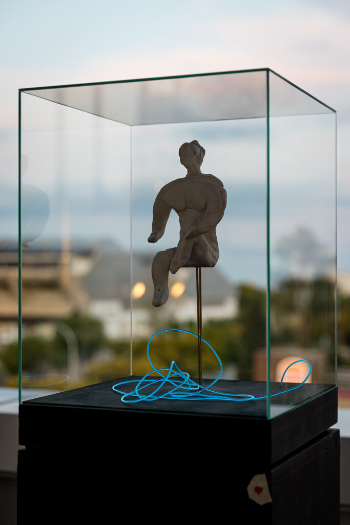 La VIII edición Schwaig.Art, música, arte y gastronomía a favor de la Fundación Rana se desarrolló con un gran éxito de convocatoria en este concepto ya consolidado que reúne diferentes formas de expresión artística. El escultor Ernesto Rodríguez Nogueira, nacido en Cuba y afincado en Mallorca desde 1999, presentó ‘NEÓN‘, esculturas en las que combina su depurado trabajo artístico con la experimentación de nuevos materiales y técnicas. Ernesto reflexiona continuamente sobre el paso del tiempo y sobre cómo el inexorable vaivén del péndulo va dejando marcas en la armadura que construimos para proteger nuestra fragilidad frente a las inclemencias de la colectividad. NEÓN surge de la oscuridad, de la fractura, del espacio. Ernesto incorpora un nuevo elemento, la luz, que representa la resistencia del alma bajo la armadura.