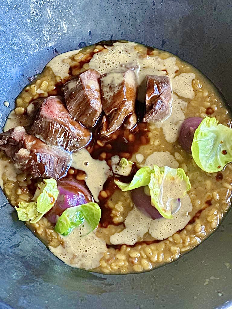 El otoño pide carnes de caza, pescado en guisos, legumbres, verduras y setas, pero, sobre todo, esa sensación de los tonos ocres y granates, que influyen a la hora de diseñar los platos y que se contemplan en las nuevas creaciones de Schwaiger. Como indica Cristina Pérez, ‘son platos con fondos de caldos muy concentrados que nos calientan el alma’.