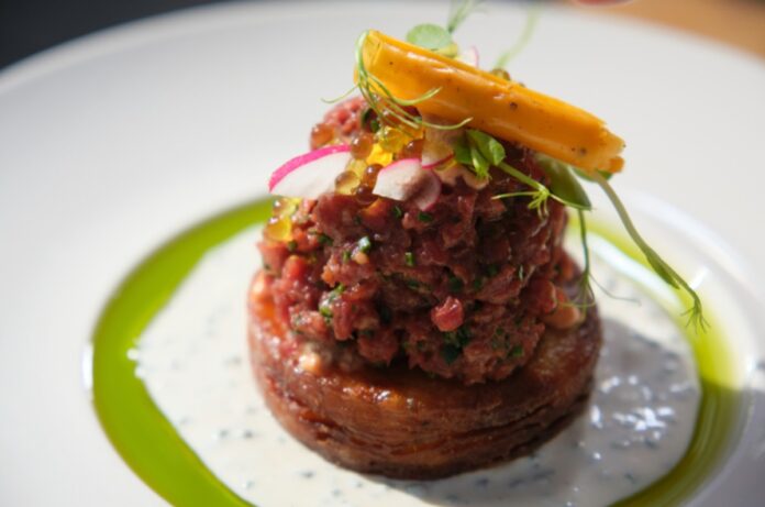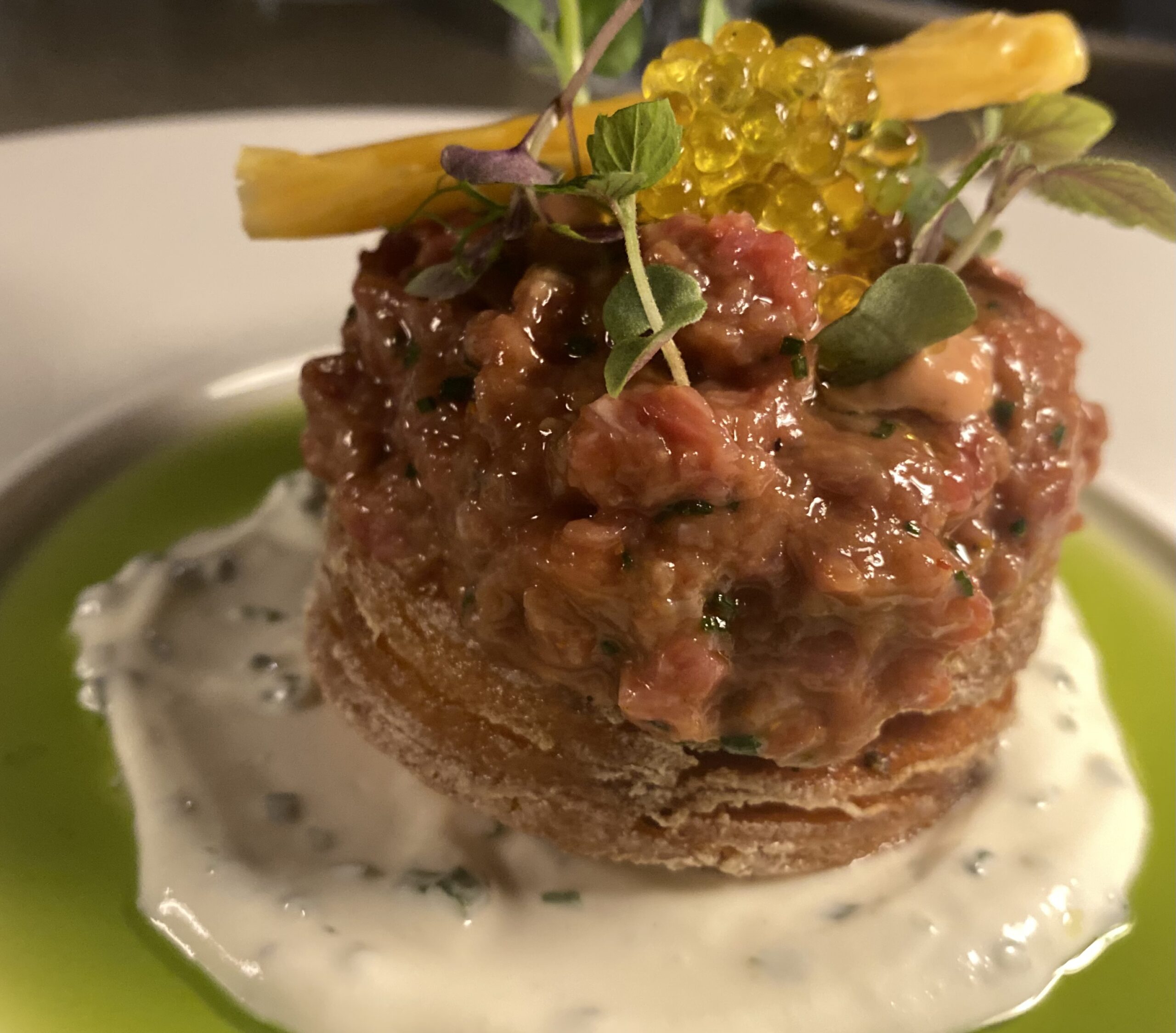 Elaborado con la mejor carne de buey y aderezado con una mezcla de ingredientes que resaltan su sabor, el tartar de ternera de Stefan Brunner y su equipo es una experiencia culinaria inigualable. Hablamos de un plato de origen centenario que requiere técnica y precisión en su preparación. La carne cortada a cuchillo garantiza una textura perfecta y un equilibrio de sabores único. Una base crujiente, carne de primera calidad, y una selección de condimentos que realzan su intensidad en cada una de sus capas.